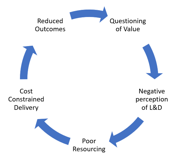 The benefits of building that trust are manifest; on average employers outside Australia were prepared to devote $1,930 per staff member last year in training compared to $735 in Australia. With a third of the resources available to deliver outcomes, it’s small wonder L&D are not able to build the trust they can elsewhere. It’s a catch 22 situation.